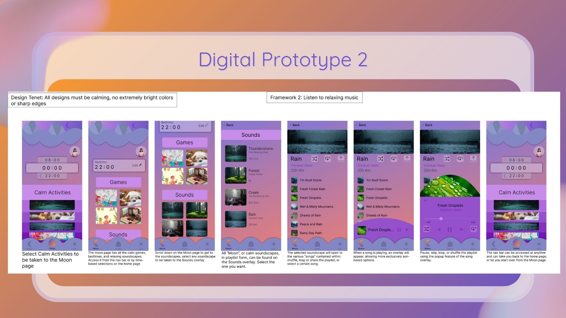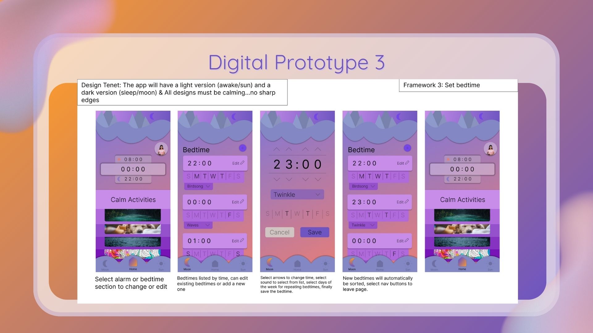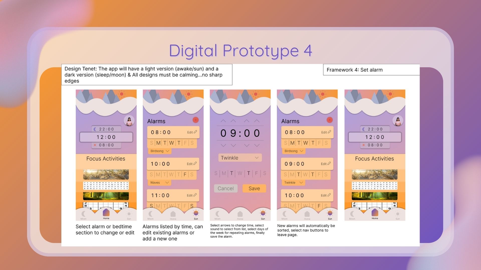 I completed research into different sleep tracking apps to understand how they use visual design to represent data and user insights. I analyzed the use of color, layout, and iconography to see how they communicate information about sleep patterns and cycles. This research informed my approach to creating a cohesive visual identity for the Celestial Cycle project, which also explores themes of cycles and patterns.
